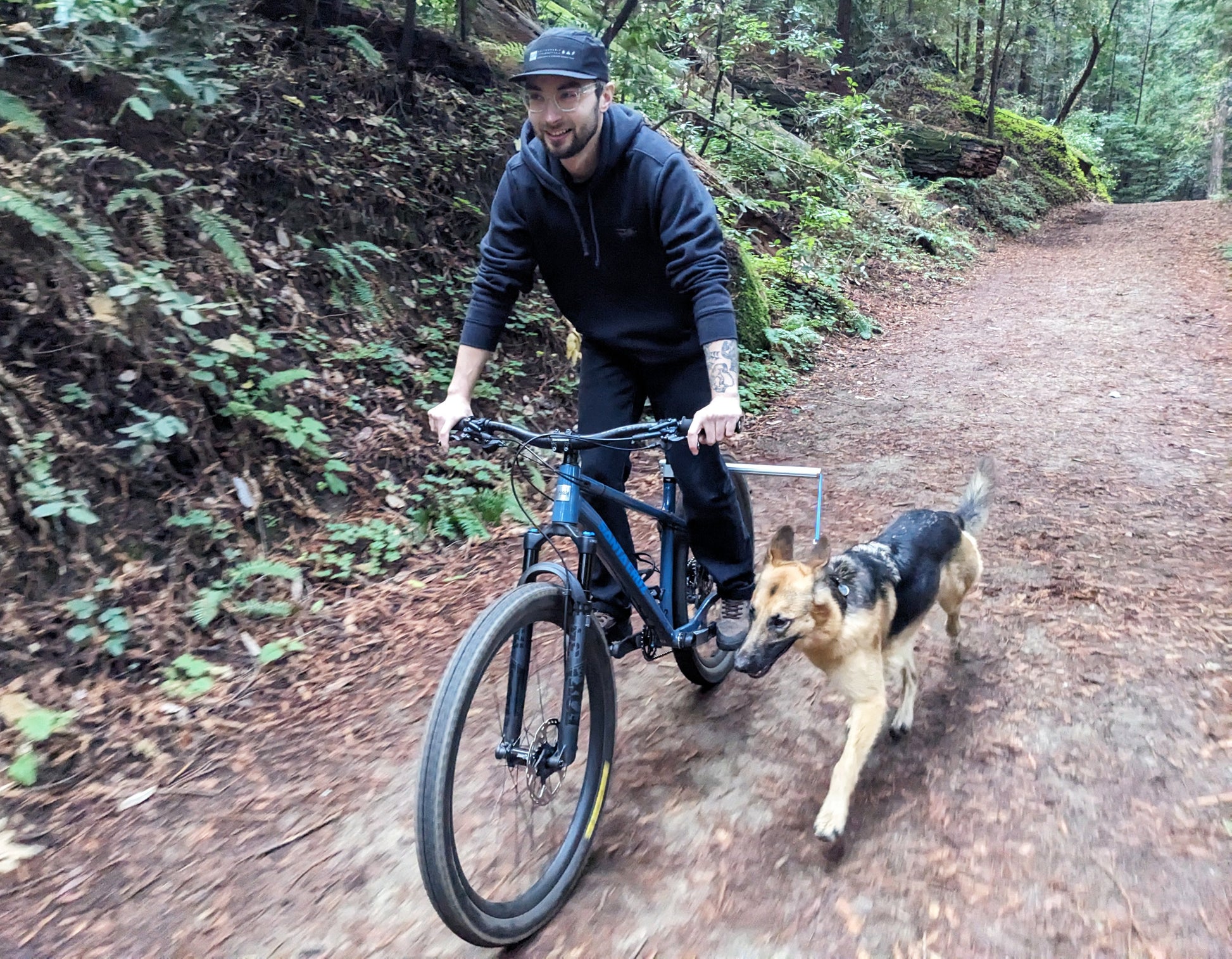 The combination of a solid attachment point below the rider's seat and the spring loaded leash provide maximum control for handling your dog's impulses, such as when they see a squirrel or another dog out on the trail.