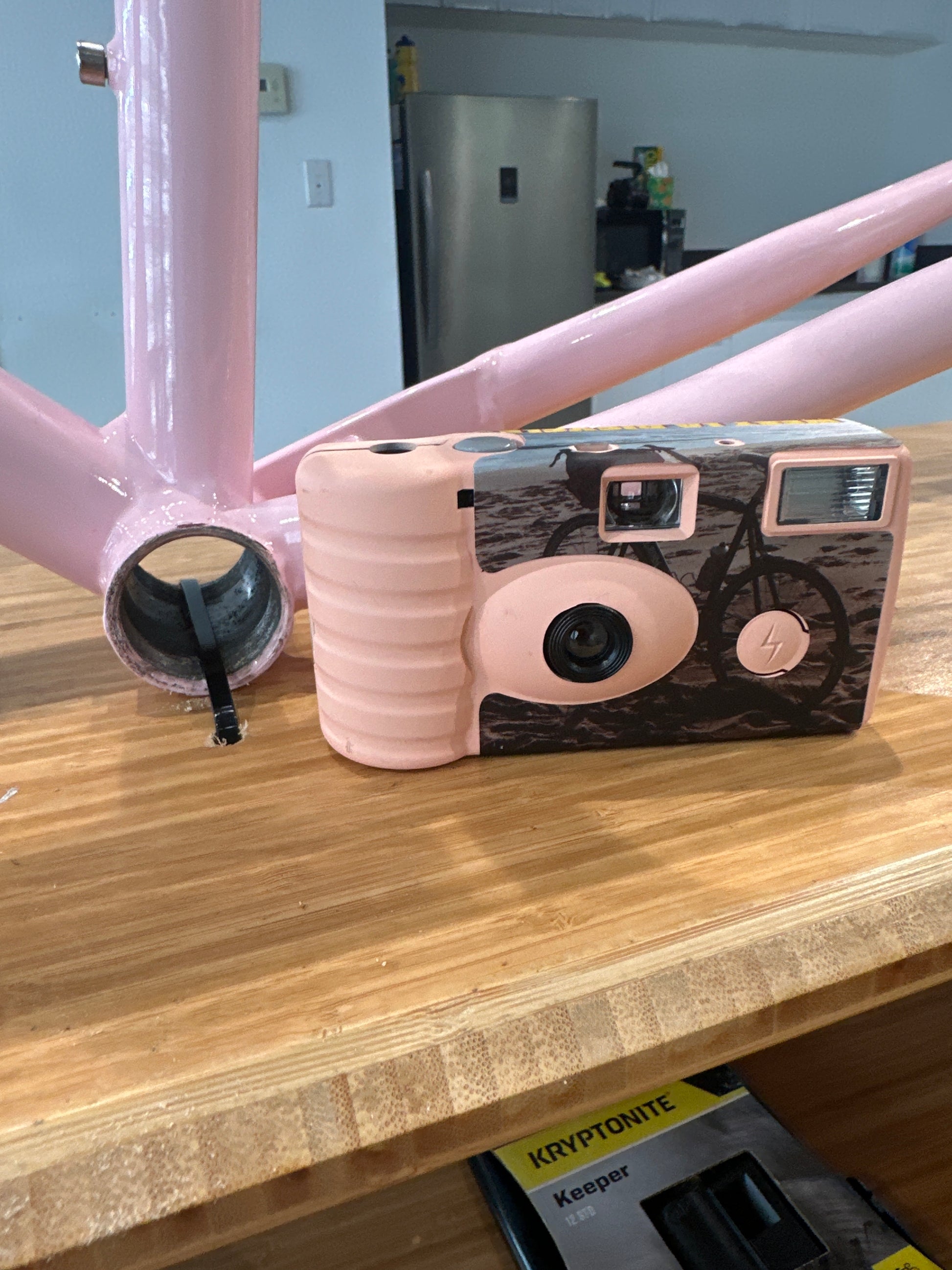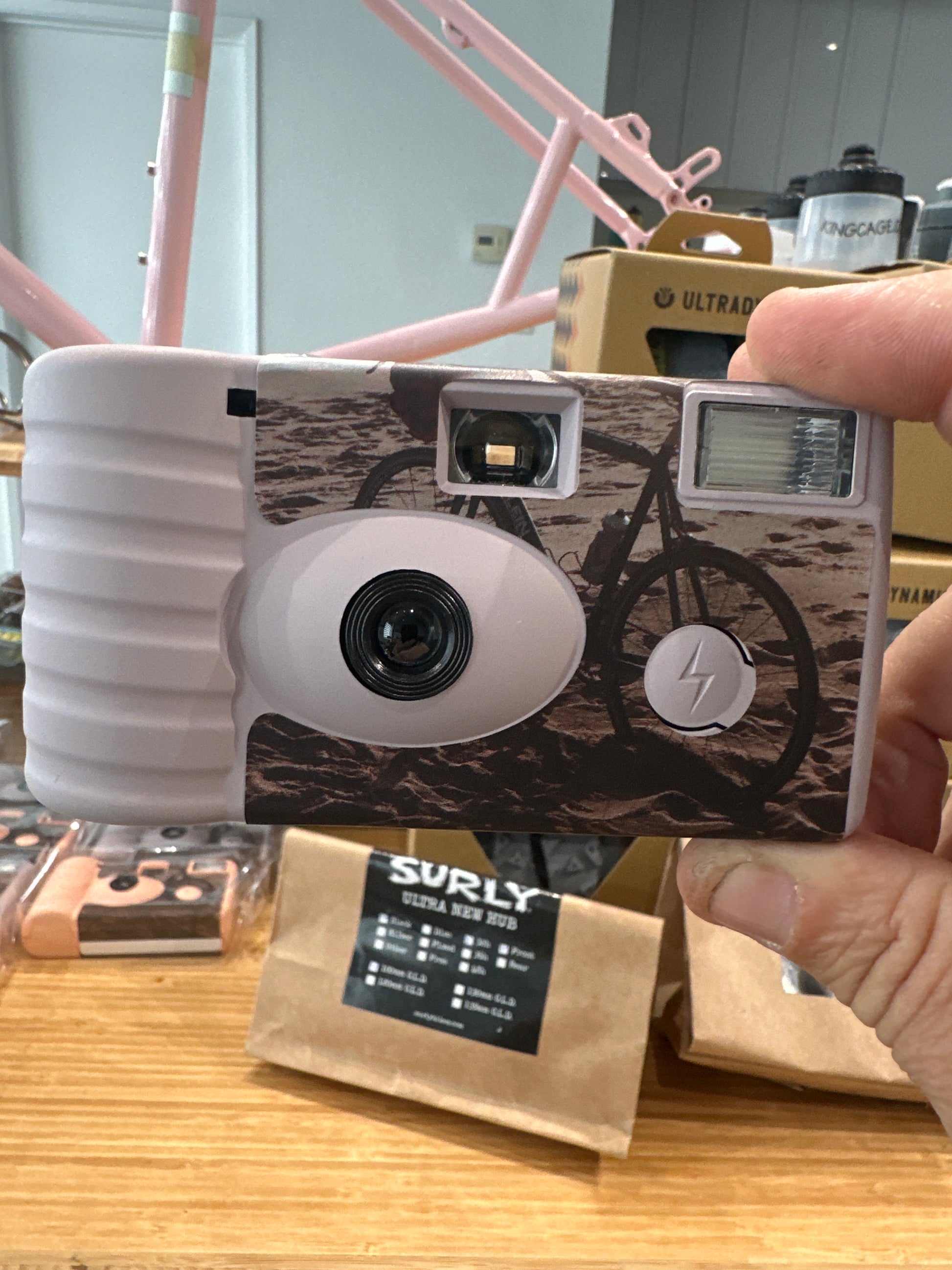 Disposable camera to take along on sick rides. It has film photos of of my old Klein Quantum that I sold to our buddy Yash on a camera that I have had on loan from him for like 3 years, and a photo of Angeles NF that I shot on that same camera.